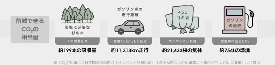 弊社で再資源化処理を行うことにより、ゴミとして廃棄・焼却処分と比較して約80%のCO2排出を削減することが可能です。